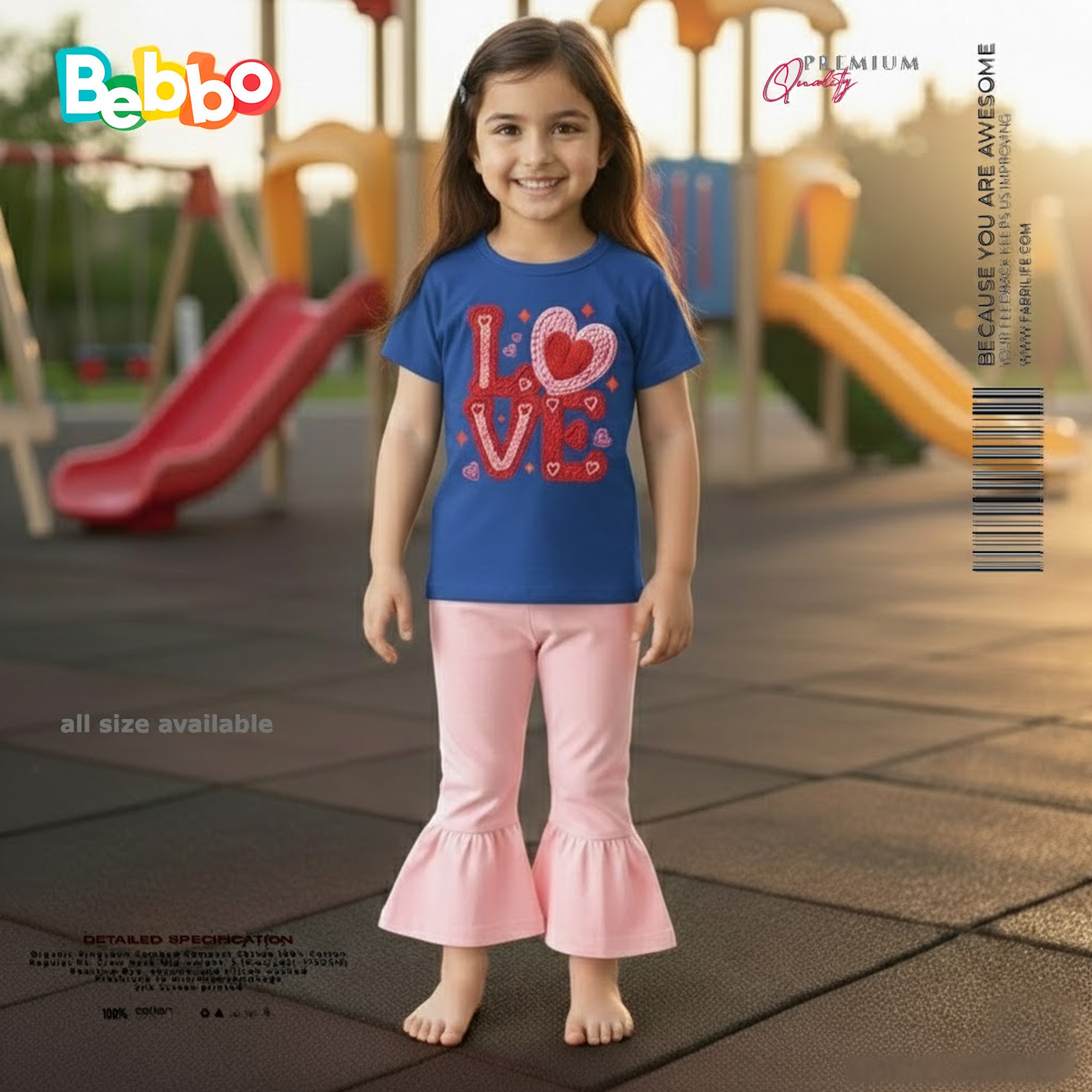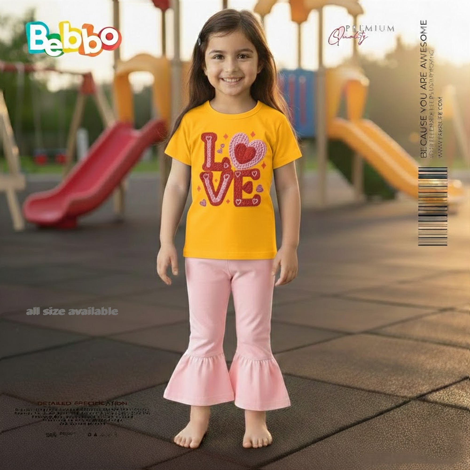 Girls Premium T-Shirt -Flare Pant Set - 1004